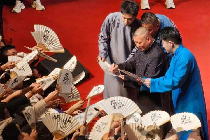 第三天,郭德纲下午在天津德云社开新书《红粉狼烟》。晚上在天津中华剧院和于谦同台说相声。这一场,石富宽、杨威的加盟,可谓是热度、人气十足。